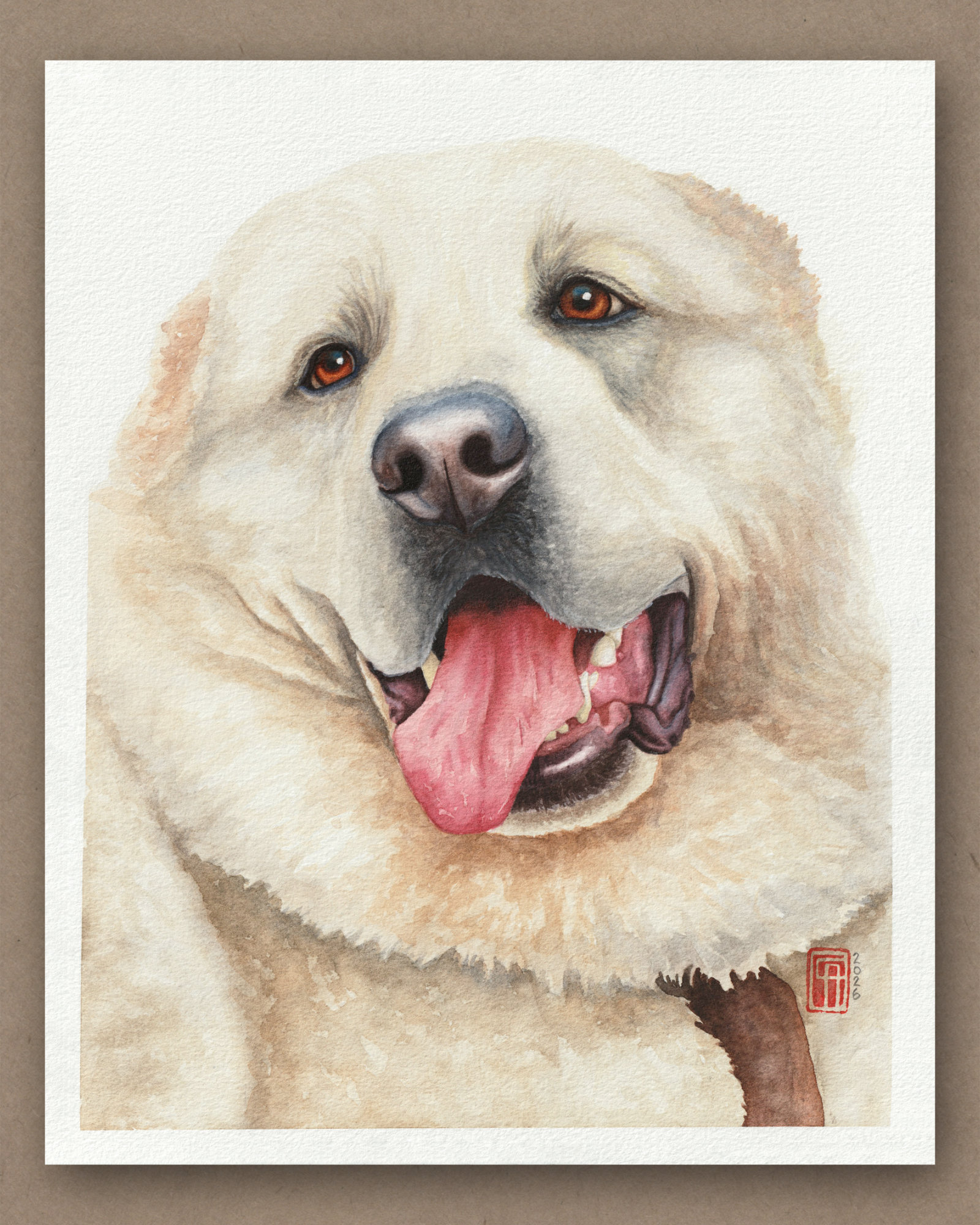 Aquarell Haustierportrait eines kaukasischen Schäferhundes