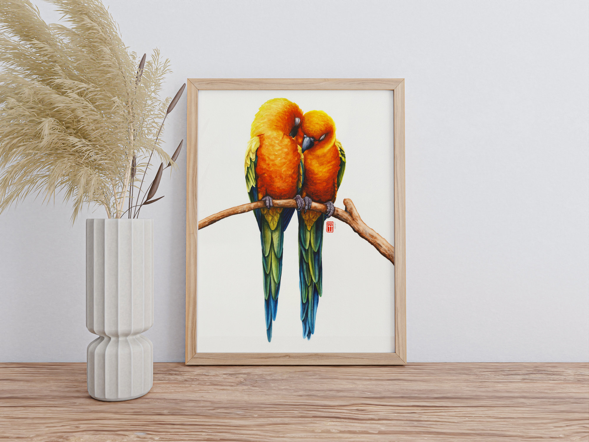 Mit ihrem leuchtend gelben und orangefarbenen Gefieder sind Sonnensittiche wahre Farbtupfer der Tropen. Trotz ihres lebhaften Wesens suchen sie oft die Nähe ihres Partners – eng aneinander gekuschelt ruhen sie gemeinsam und zeigen so ihre enge soziale Bindung.